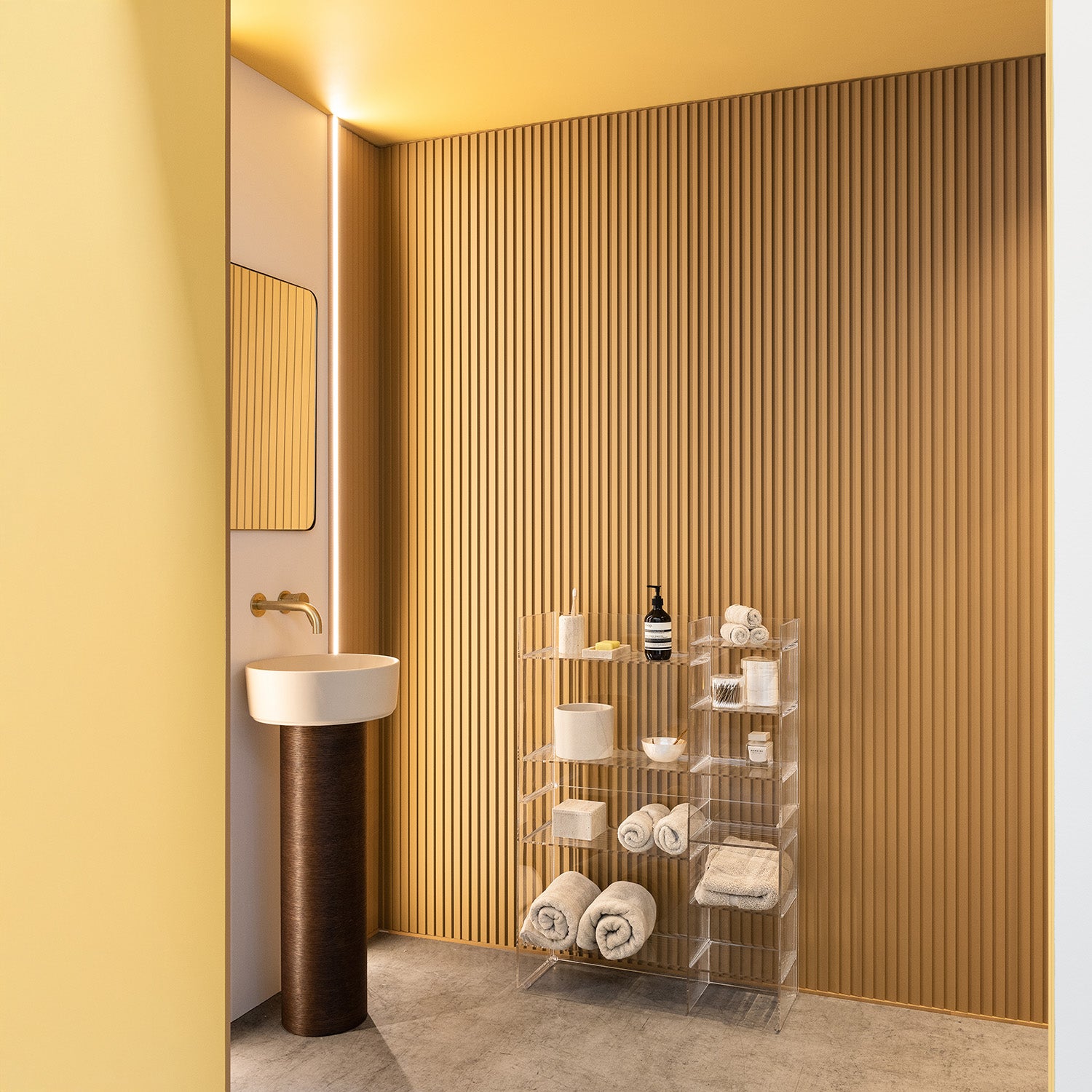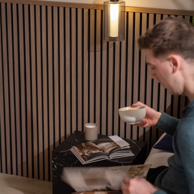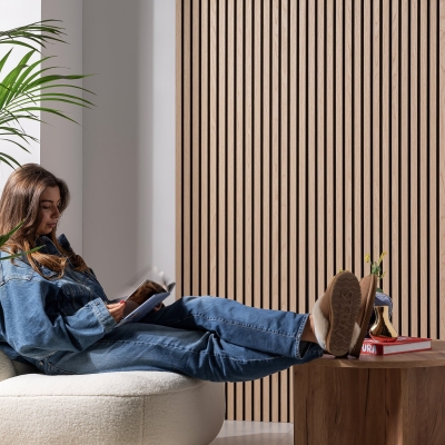 This SlatWall Acoustic Panel is crafted by us at our Yorkshire workshop, ensuring a high-quality finish beyond compare. Each panel is assembled from MDF slats topped with a premium wood veneer, bonded to recycled felt with extra-strong adhesive.
