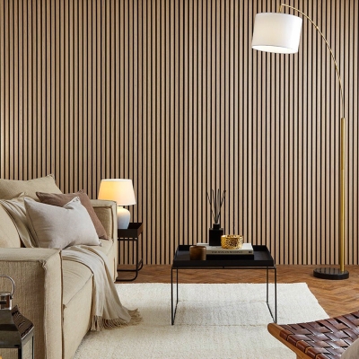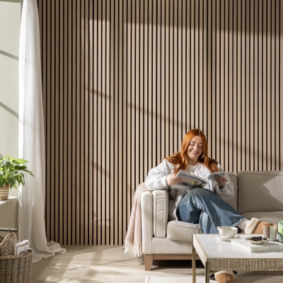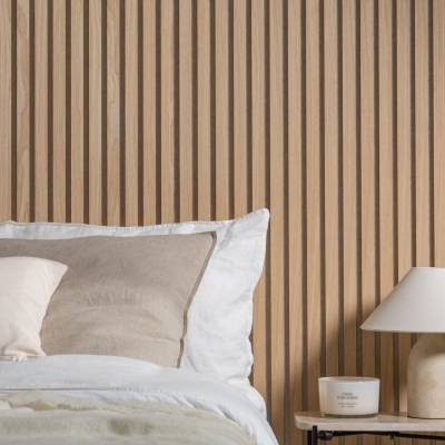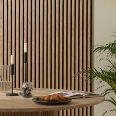 SlatWall Acoustic Natural Oak Panel on Beige Felt